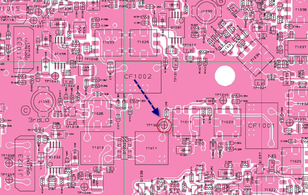 The N2PK serves as our sweep generator source. The N2PK is feed through a step attenuator and then into the rig. The plots made here were taken with a 7.0 MHz input signal. The spectrum feed was captured from this point in the 2nd IF, just prior to the 3rd mixer. The sample point is removed from the 1st IF by several conversion strips and the 1st IF and provides a way to measure without disturbing the shape of the passband.